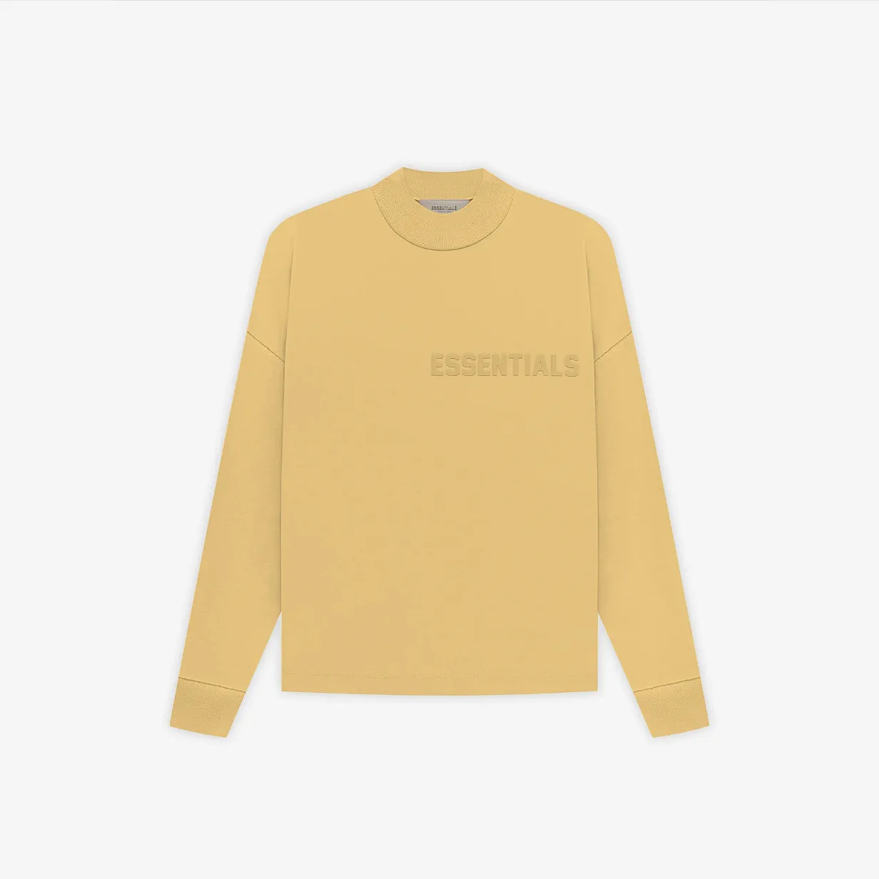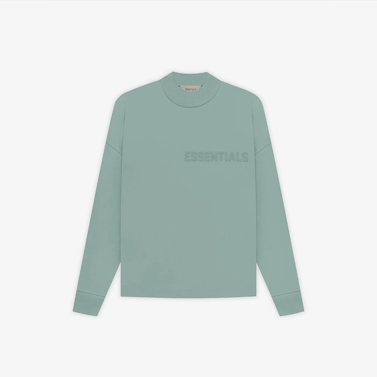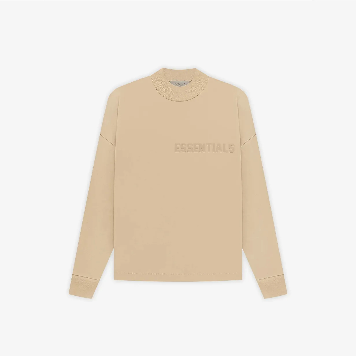 Direct Factory Stock. The signature long-sleeve jersey tee shirt is detailed with a modern Essentials rubberized logo on the chest. An Essentials rubberized label is stitched at the back collar.